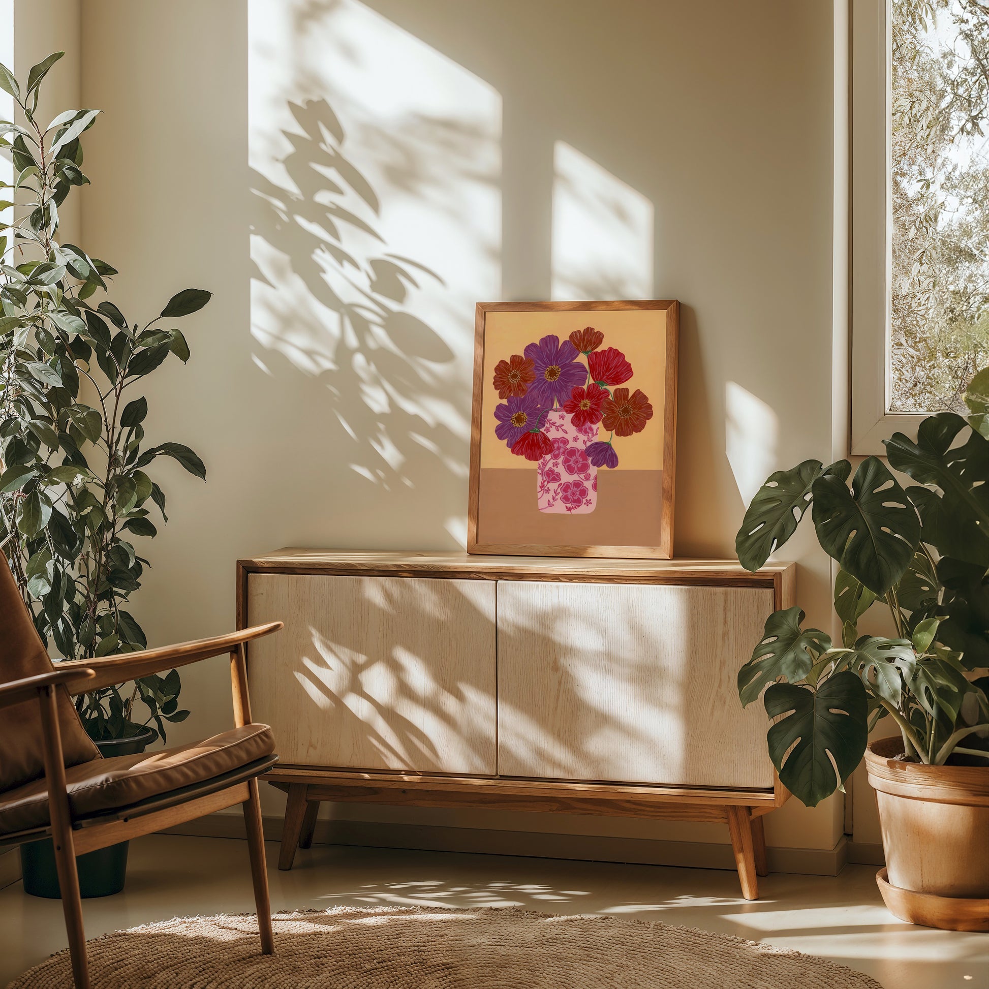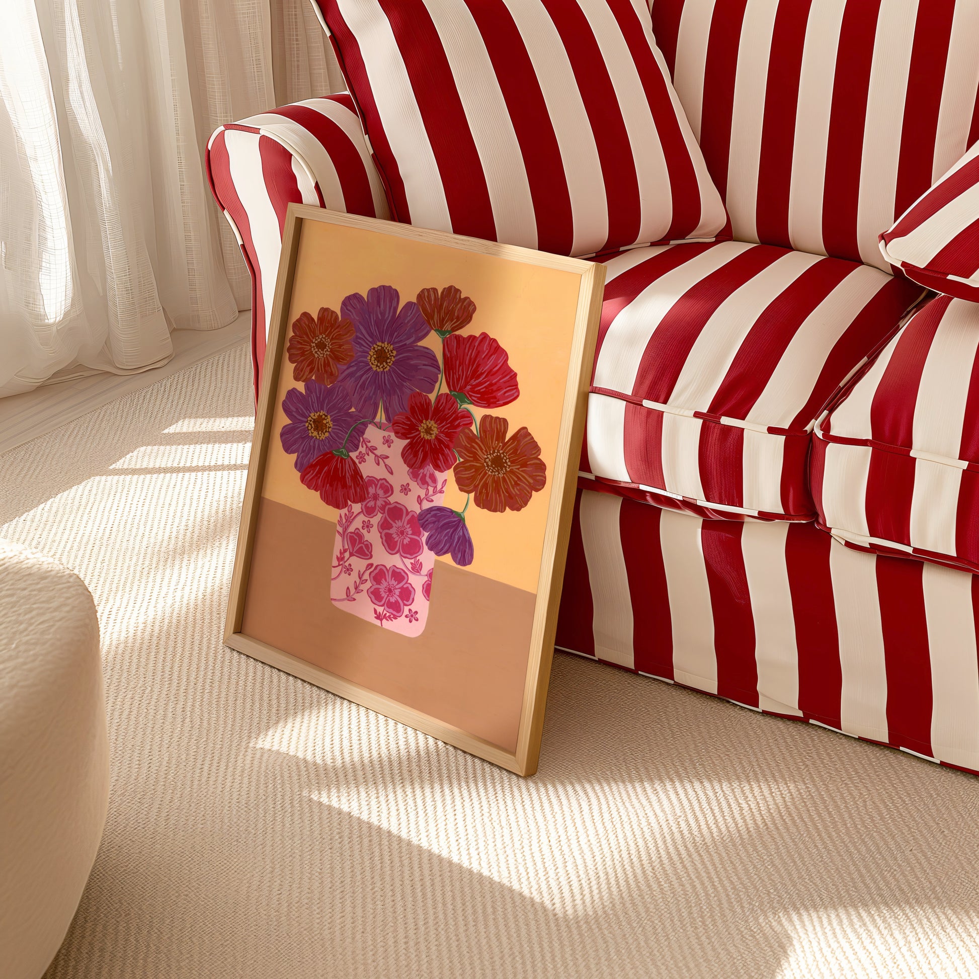 I'm a firm believer that every space needs flowers in every season, even in the fall when the garden starts to fade. This sweet print celebrates the colors of fall with cosmos in beautiful, rich hues.