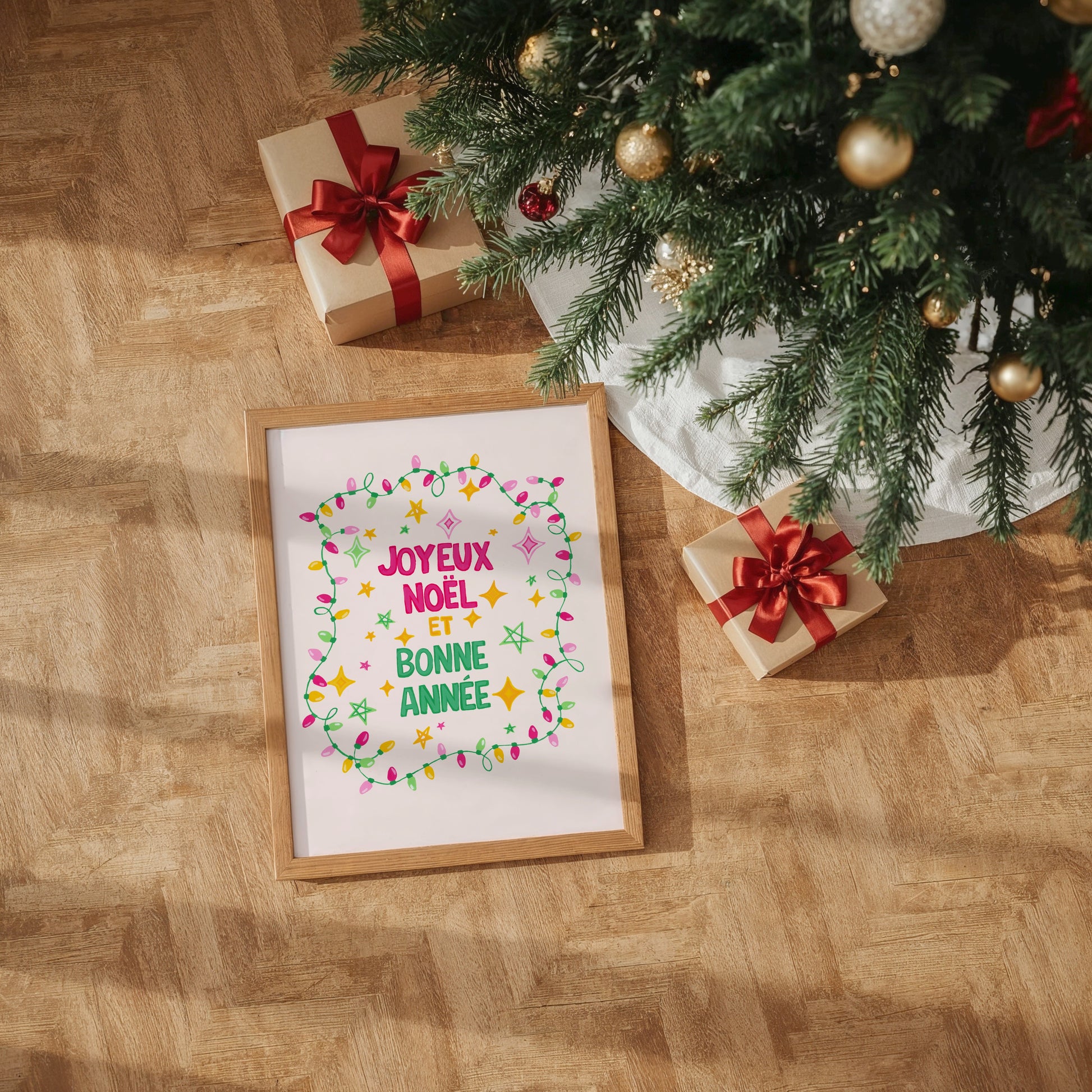 Merry Christmas and Happy New Year sound just as festive in French! This fun and bright print brings a pop of color to your holiday decor.